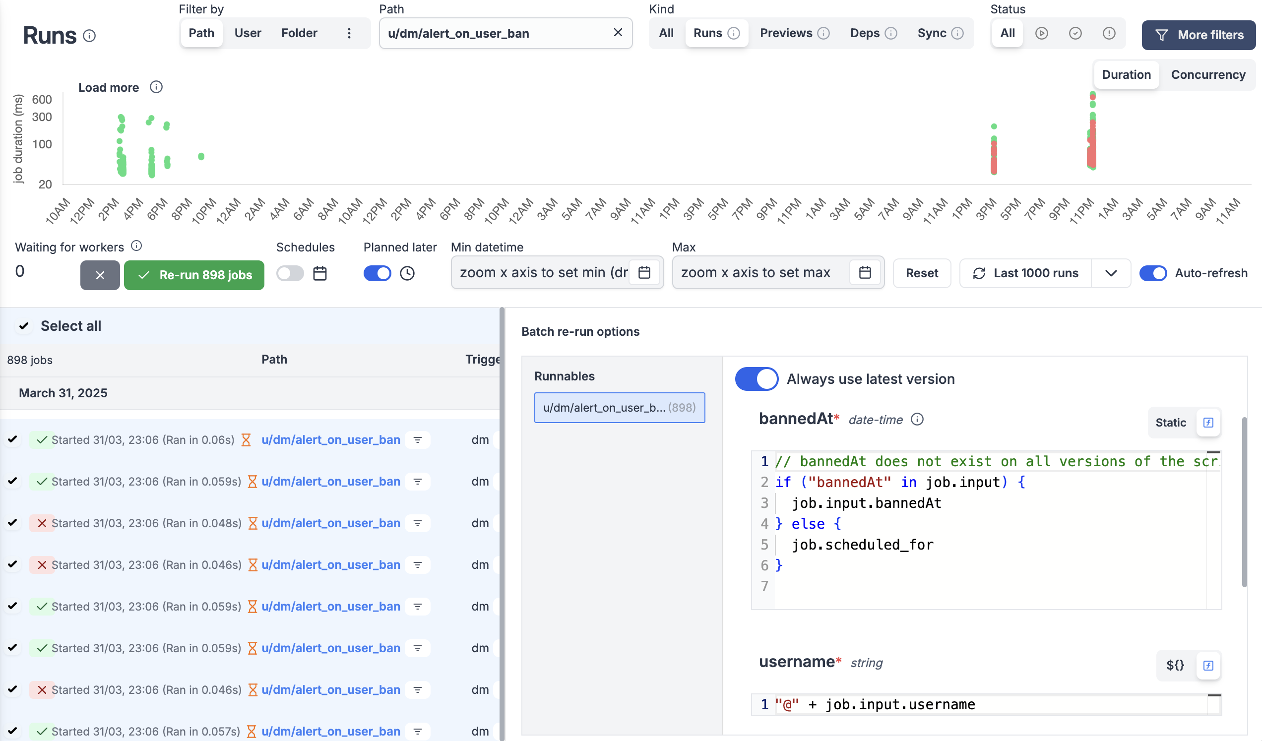 - Skip runs based on scriptable custom conditions (weekends, holidays, API availability)
