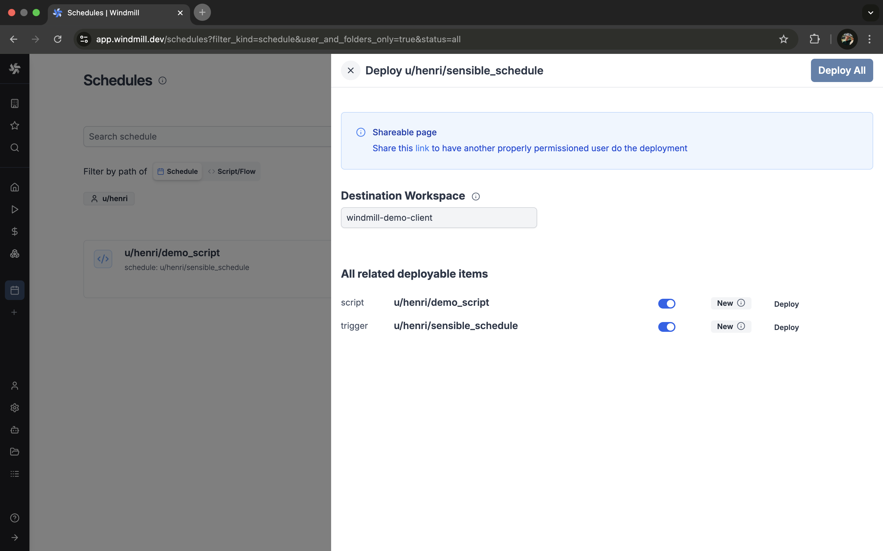- Deploy individual items to parent workspace using deployment UI