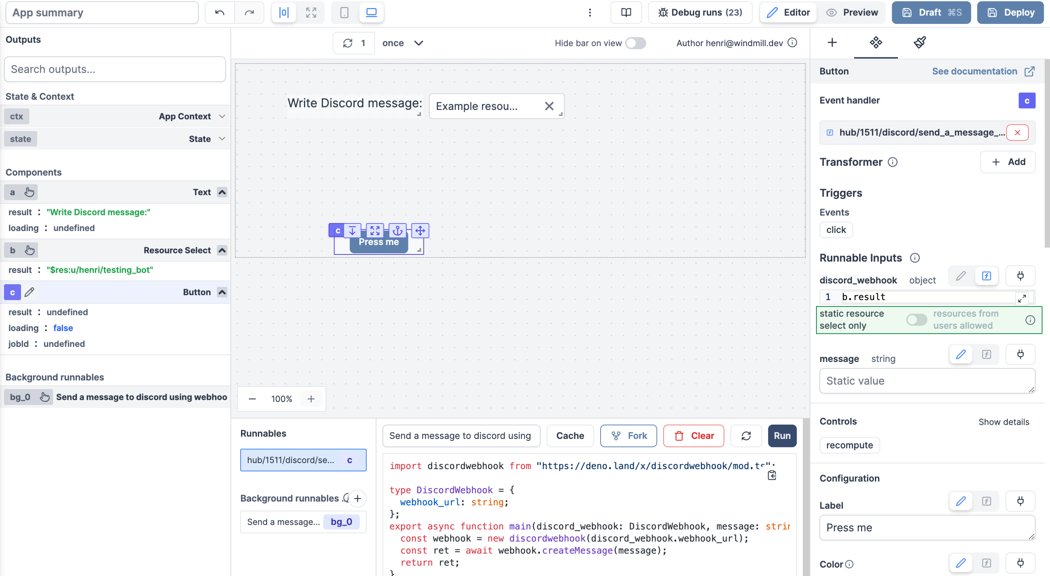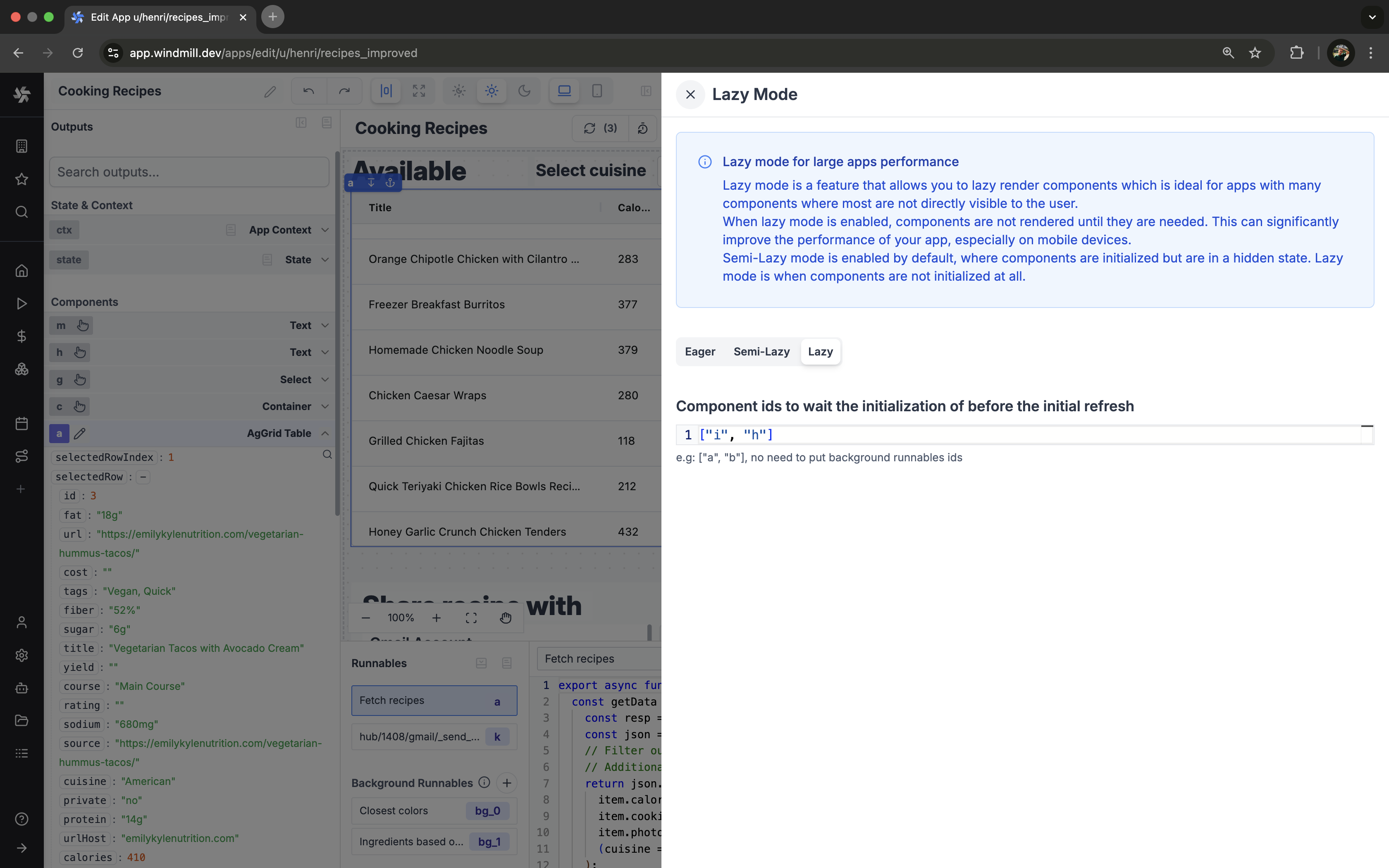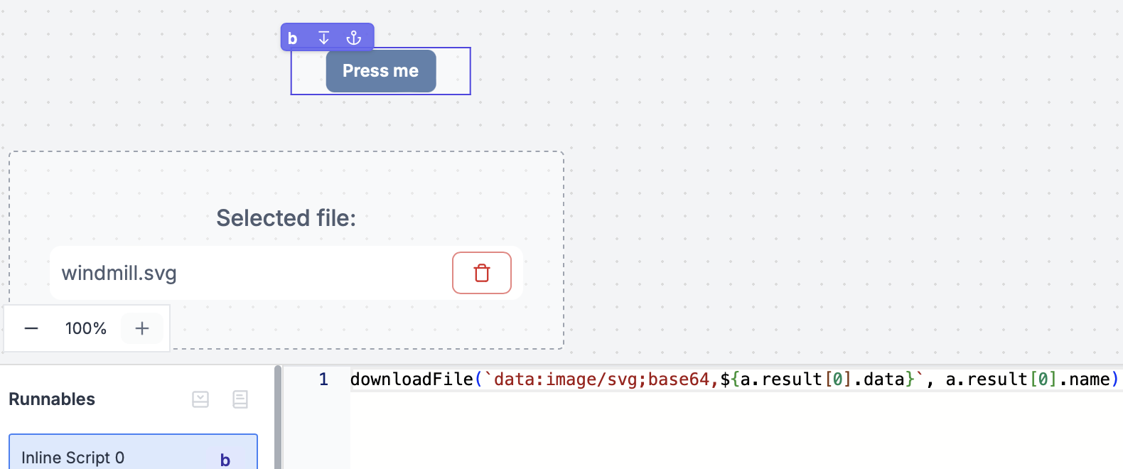 - Integrated with Windmill backend flow/script capabilities