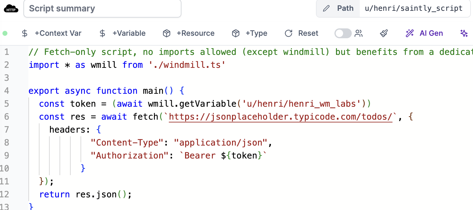 Windmill provides a true NodeJS compatibility mode using Bun. This means that you can run your existing NodeJS code without any modifications. Only comment //nodejs on the first line of your Bun script.