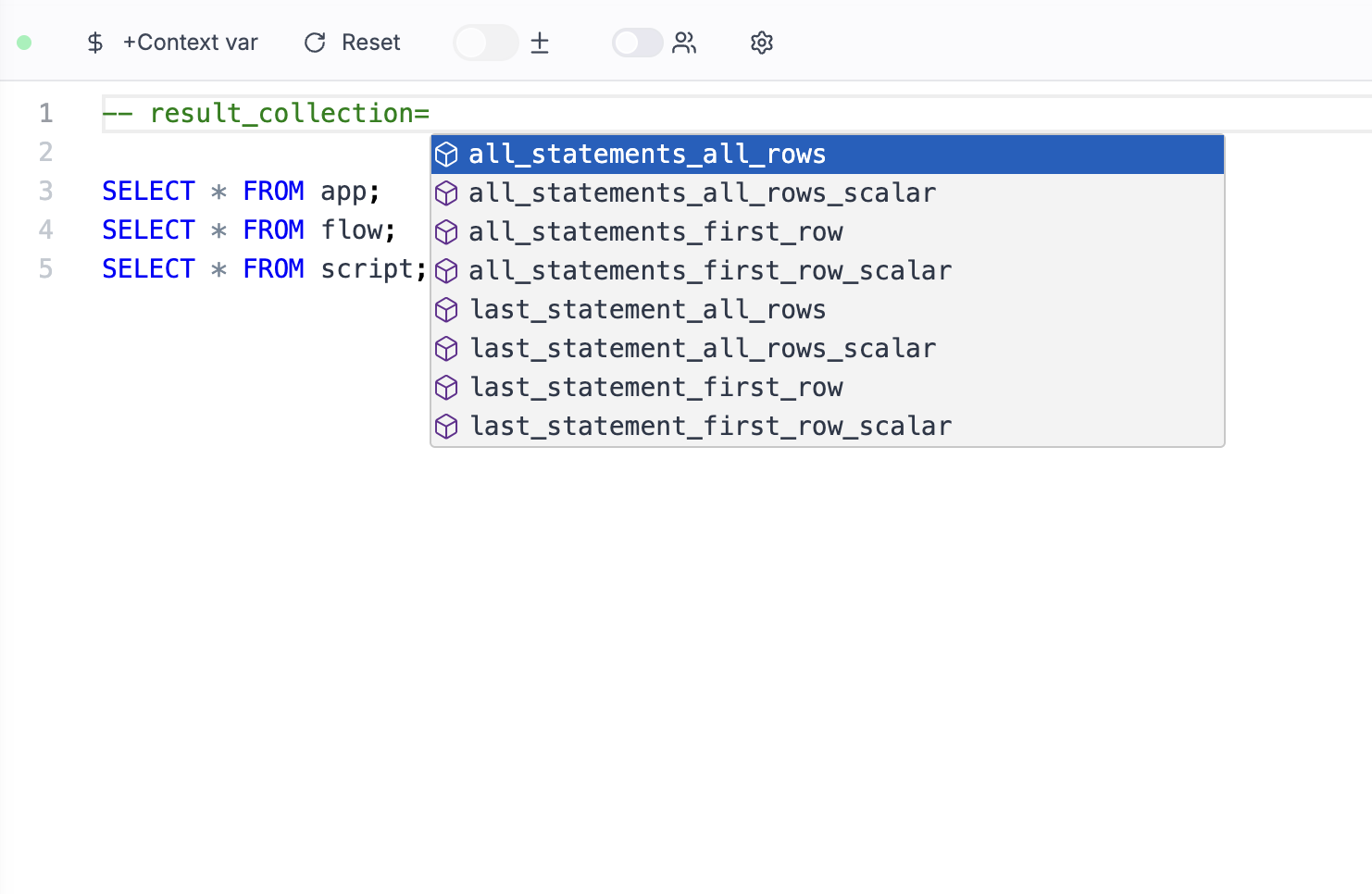 Choose how the result is collected from your SQL scripts and what is returned